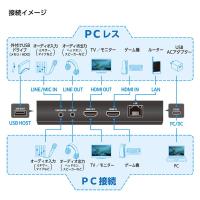 | 仕様1 | [インターフェイス] PC/電源接続用:USB3.2 Gen1 Type-C USBストレージ接続用:USB2.0 Type-A [入力端子]HDMI2.0、ライン入力(φ3.5mmモノラルミニジャック) [出力端子]HDMI2.0、RJ-45LANポート、ライン出力(φ3.5mmステレオミニジャック) |