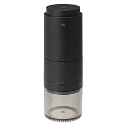 <B>ボタンを押すだけ、自動で終了</B><BR>スイッチひとつでいつでも挽きたてのコーヒーが楽しめる電動コーヒーミルです。1回で約25gの豆を挽くことができます。豆が挽き終わったら自動停止、USB充電式なのでキャンプや野外にも持ち出せます。刃は摩擦熱の少ないセラミック製で、幅広い挽き目に対応できるコニカル式を採用しました。