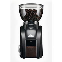 静電気発生軽減装置搭載のソリスのコーヒーグラインダー。コーン式の本格派でアロマ香る豆が挽ける。エスプレソッソからフィルターコーヒーまで対応の粒度設定可能。