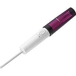 鞄やポーチに収まり、使用時は手軽に取り出して使いやすい高さ15.4cm×直径4.5cmのハンディサイズを実現しました。小型化を実現するため新たに小型ポンプとマイコン制御を開発し、単4形アルカリ乾電池2本で駆動します。マイコン制御による回路方式の見直しにより、電池寿命は約100回(1日1回使用で3ヶ月以上)の使用が可能で、長期の旅行時においても便利です。