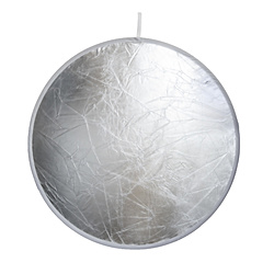 レフ板130cm、白枠仕様。<BR>ホワイト&シルバーのリバーシブルタイプ。
