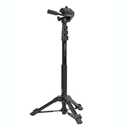 分離してミニ三脚、一脚としても使える多機能タイプ(雲台部分は共用)です。
