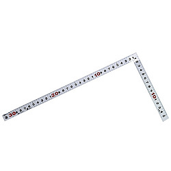 精度:直角度:100mmにつき0.1mm以下,長さの許容差:±0.2mm以下 表目盛 長枝:外目盛30cm 内目盛25cm 短枝:外目盛15cm 内目盛10cm 裏目盛:長枝:外目盛1尺 内目盛7寸 短枝:外目盛5寸 内目盛3寸 表示:赤数字入 十二支付 形状:同厚 本体:ステンレス
