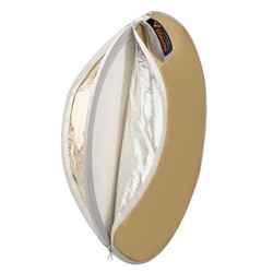 ■5イン1マルチディスクは、1枚のル一セントリフレクターとそれを覆うホワイト、ゴールド、ソフトゴールド、シルバーのリバーシブル素材で作られた1枚で5枚分のリフレクターとして利用できます。