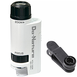 スマートフォンを取り付けて撮影可能な、ハンディ型顕微鏡。もちろん、スマートフォンなしでもハンディ顕微鏡として使用できます。倍率も60〜120倍のズーム式なので、見たいものに合わせて変更可能。LEDライトが内蔵していますので対象物を明るく見やすくします。乾電池式なので電源の心配もなく屋外で使用することができます。不思議がいっぱいのミクロの世界をのぞいてみましょう。