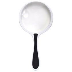 レンズ径100mm、手持ちルーペ最大サイズで広い範囲が見えやすい。白と黒のツートンカラーでシンプルデザインの手持ちルーペです。