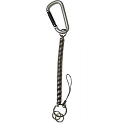 カラビナ:アルミ,カールコード:ポリウレタン。耐荷重:約0.2kg。