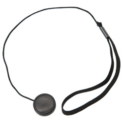 ゴムひもをレンズ鏡胴の可動部を避けるように止め、紐の先端部(粘着のり付)をキャップに固定します。
