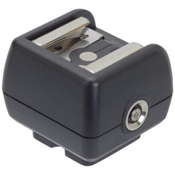 カメラのホットシュー(一般的な形状のもの)に装着してシンクロコード式ストロボを接続可能に
