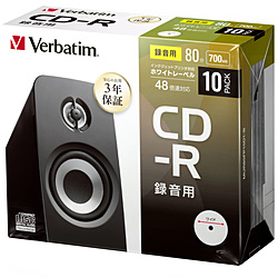 VERBATIMJAPAN 音楽用 CD-R 1-48倍速 700MB 10枚【インクジェットプリンタ対応】 MUR80FP10D1-B