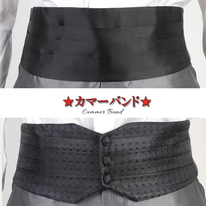 | ポイント | フォーマルシーンで活躍するタキシードならではのアイテムカマーバンド ブラック・ドット |