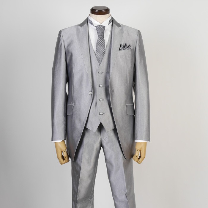 ジャケット1釦 ピークドラペル 3ピース タキシードスタンダードシルバー A体/BE体 29000 RT4010