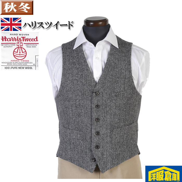 S M L LL ベスト ジレ ウール メンズ ハリスツイード 全5柄 11000 wRV611