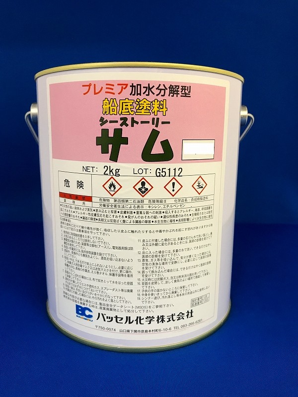 定置網、養殖網などに抜群の防汚効果を発揮する漁網用防汚剤「ボウモウシリーズ」でお馴染みバッセル化学の大人気船底塗料「新海物語」シリーズ。