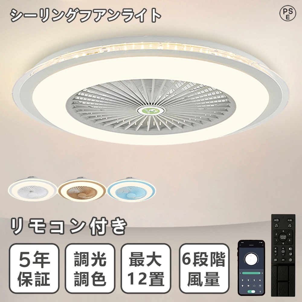 シーリングファンライト シーリングファン 6畳~12畳 おしゃれ 軽量 dcモーター 北欧 調光調色 風量調節 空気循環 リモコン付き スマホ 省エネ 節電 家庭用 人気
