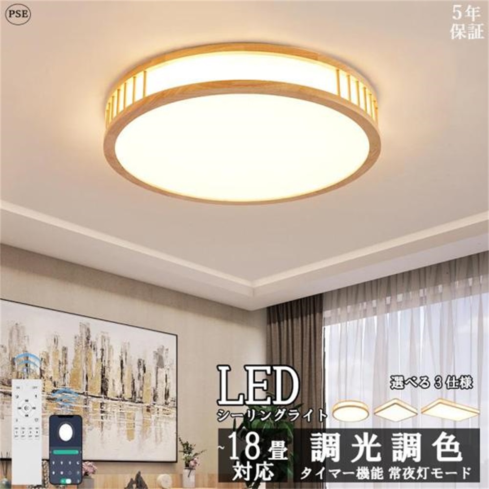 シーリングライト led 4~14畳 木目調 天然木 長方形 四角形 円形 調光調色 照明器具 節電 led照明 天井照明 リビング照明 和室 書斎 寝室 和風 白枠 贈り物