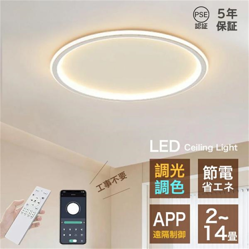 シーリングライト LED 北欧 おしゃれ 調光調色 6~14畳 照明器具 天井照明 シーリング照明 常夜灯 間接照明 電球色 スマホ制御 リモコン付き 寝室 リビング 和室