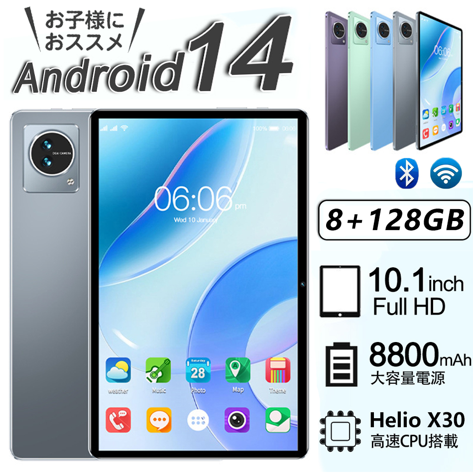 タブレット PC 本体 10.1インチ Android14 Wi-Fiモデル RAM8GB ROM128GB GMS認証 格安タブレット 大人気 カバー ケース 軽量 学生 子供 仕事 ネット授業 2024