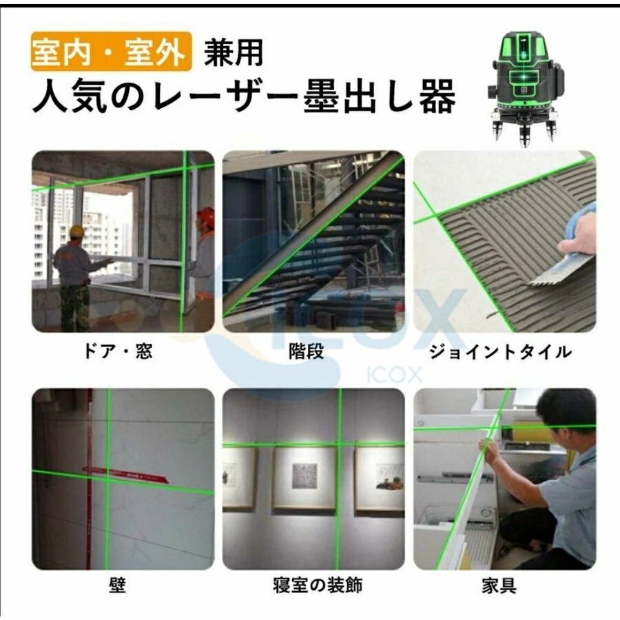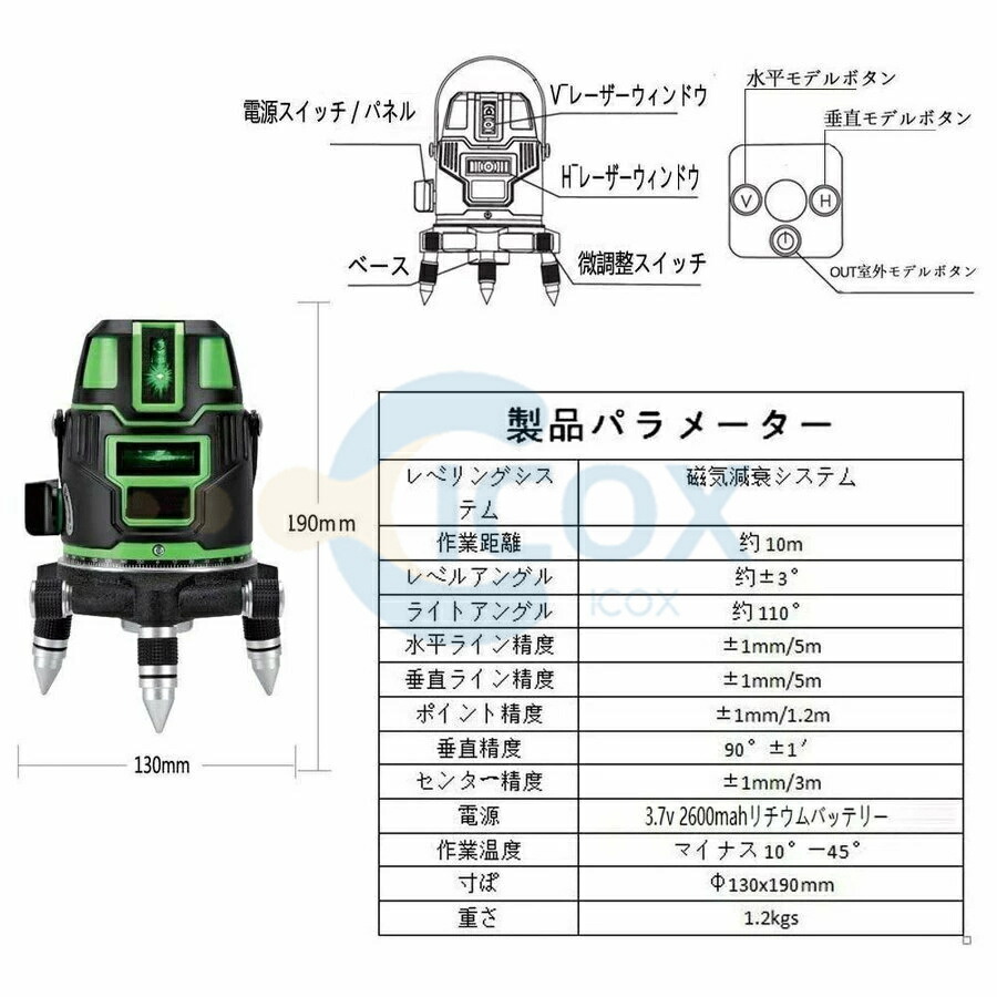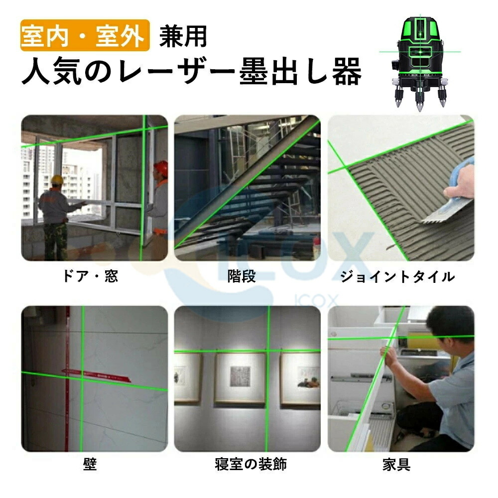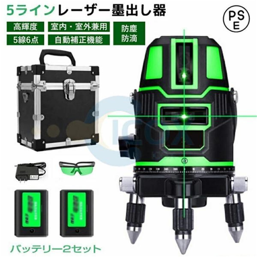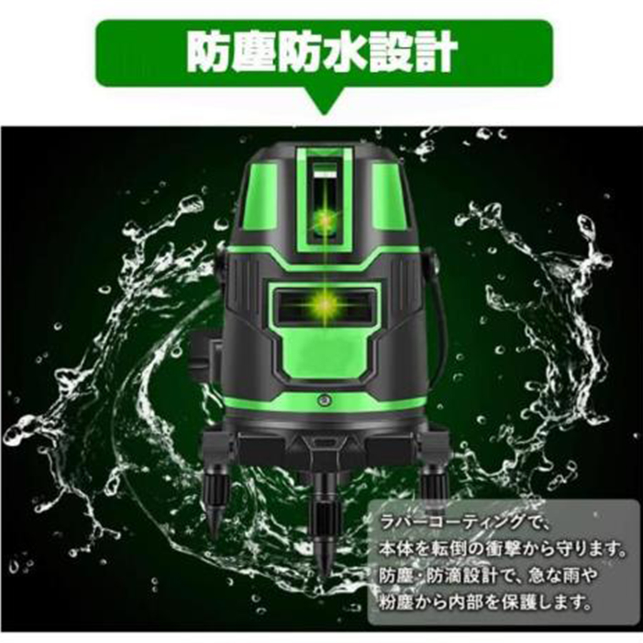グリーンレーザー墨出し器 レーザー 5ライン 6点 フルライン バッテリー2個付き 高精度 光学測定器 軽量 墨付け 建築 基礎 レーザー墨出し器 レーザーレベル