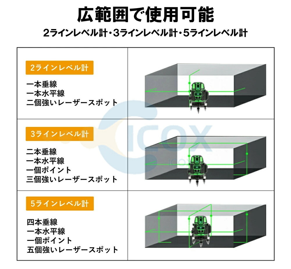 鮮視度360度は便利で、線の位置を調整することができて、2つの回転を組み合わせ、垂直線で正確に位置決め、誤差を減らし、仕事効率が大幅にアップできます。