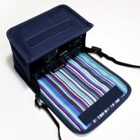 ・ケースは水洗いができません。パッキングテープ等を丸め表面を軽く叩いていただくと汚れを取ることができます。 ・シワや折り目が目立つ場合は、当布をしアイロンを部分的にかけていただく事も可能です。 (マジックテープ部分は熱に弱いので、避けてください) |