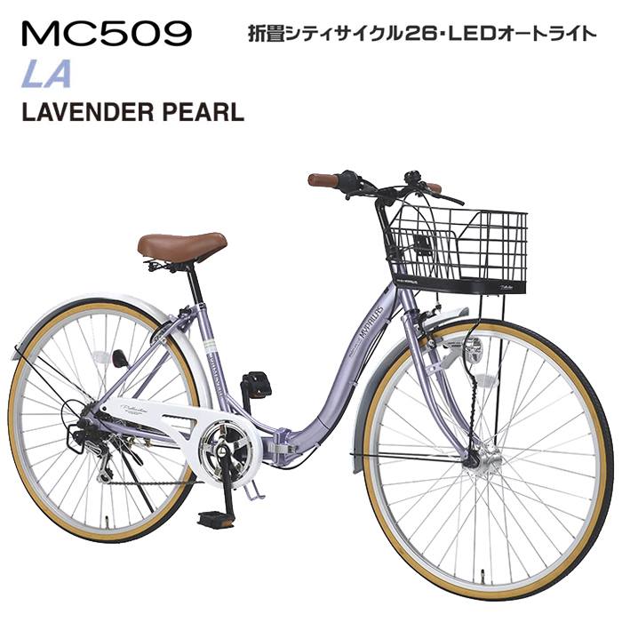 | 型式:折畳シティサイクル26・6SP・オートライト 型番:MC-509 ・JIS耐振動試験合格品 ・変速シフター/グリップシフト ・変速ギア/シマノ ・ディレーラー/シマノ ・前輪ブレーキ/キャリパーブレーキ ・後輪ブレーキ/バンドブレーキ ・ ハンドル・バー/セミフラットタイプ・差込式 備考/LEDオートライト ハーフカバーチェーンケース オリジナルバスケット リング錠 折畳部二重ロック バスケットサイズ 約W320×D230×H180(mm) |
