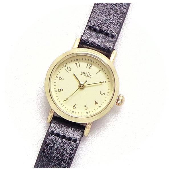 | ◆5)ブラック◆ ベルト:ブラック/文字盤:シャンパンクリーム/針・インデックス:ゴールド/尾錠:ゴールド |