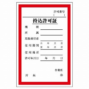 321-02 持込許可証・検査済ステッカー 持込許可証 PPステッカー 150×100×0.08mm厚 ユニット UNIT