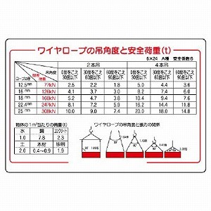 327-08B ワイヤロープ点検標識 ワイヤロープのつり角度と安全荷重 600×900×1.2mm厚 エコユニボード ユニット UNIT