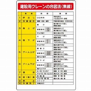 327-35A 建設用クレーンの合図法(無線) クレーン合図法標識 エコユニボード 900×600×1.2mm厚 ユニット UNIT