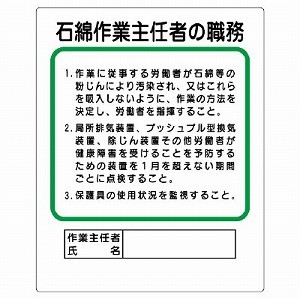 356-37A 作業主任者職務表示板 石綿取扱作業場標識 石綿障害予防規則対応標識 エコユニボード ユニット UNIT