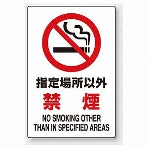 802-162 禁煙標識 指定場所以外禁煙 合成紙(ポリプロピレン)ステッカー 450×300×0.35mm厚 ユニット UNIT