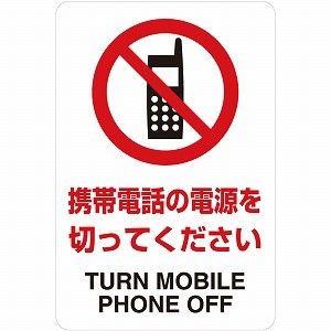 807-72A 禁止標識 携帯電話の電源を切ってください 透明ペットフィルム (小) 150×100mm 5枚1組 ユニット UNIT