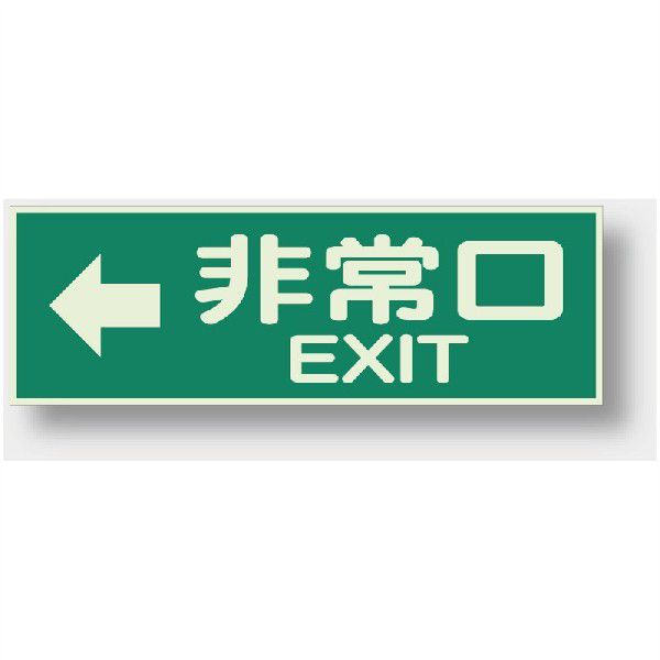 829-64 避難・誘導標識 蓄光性標識 ←非常口 蓄光板 100×300×1mm厚 ユニット UNIT