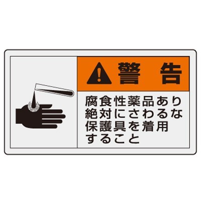 846-09 製造物責任(PL)警告表示ラベル (大) 警告腐食性薬品あり絶対にさわるな… ペットフィルムステッカー 60×110mm 10枚1組 ユニット UNIT