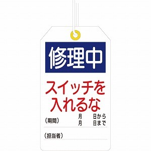 859-24 修理点検標識 吊り下げ式標識 ユニタッグ 修理中スイッチを入れるな ユニット 10枚1組 UNIT