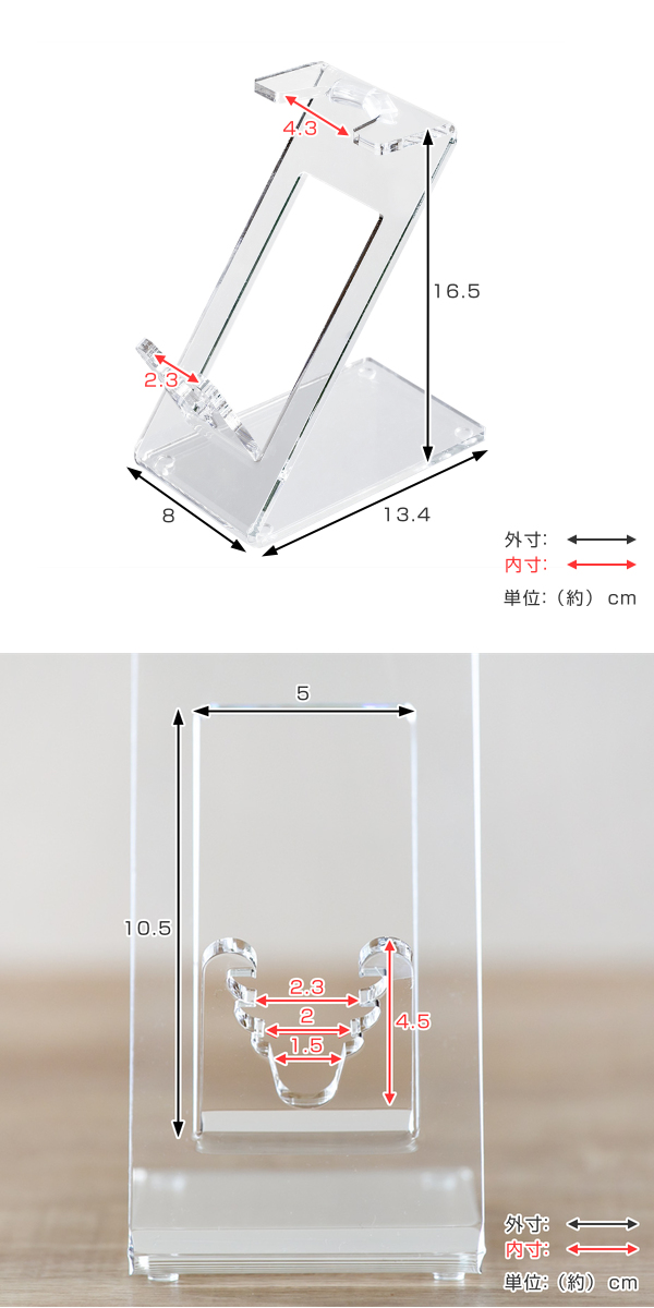 ・厚みのあるアクリルの美しさは、ドレッサーに置いてもお部屋の雰囲気を壊す事無くインテリアに溶け込み、クリスタルデザインのスタンドで「魅せる収納」が叶います。