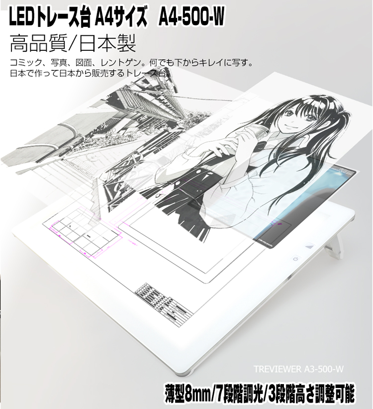 【おまけ付】【ラッピング無料】アイシーまんが工房PRO / LED トレース台 薄型 トレビュアーA4 プロ仕様 漫画家セット【ホワイト】【A4-500w-set】