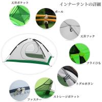 【高品質】:シームテープ加工された防水ダブルステッチ、高い防水性能;テントに十分な安定性を与える強力なアルミポール;UVカット。