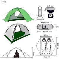 GEERTOP テント 2人用 軽量 防水 キャンプ アウトドア 登山用 4シーズンに適用 140cm x 210cm(緑)