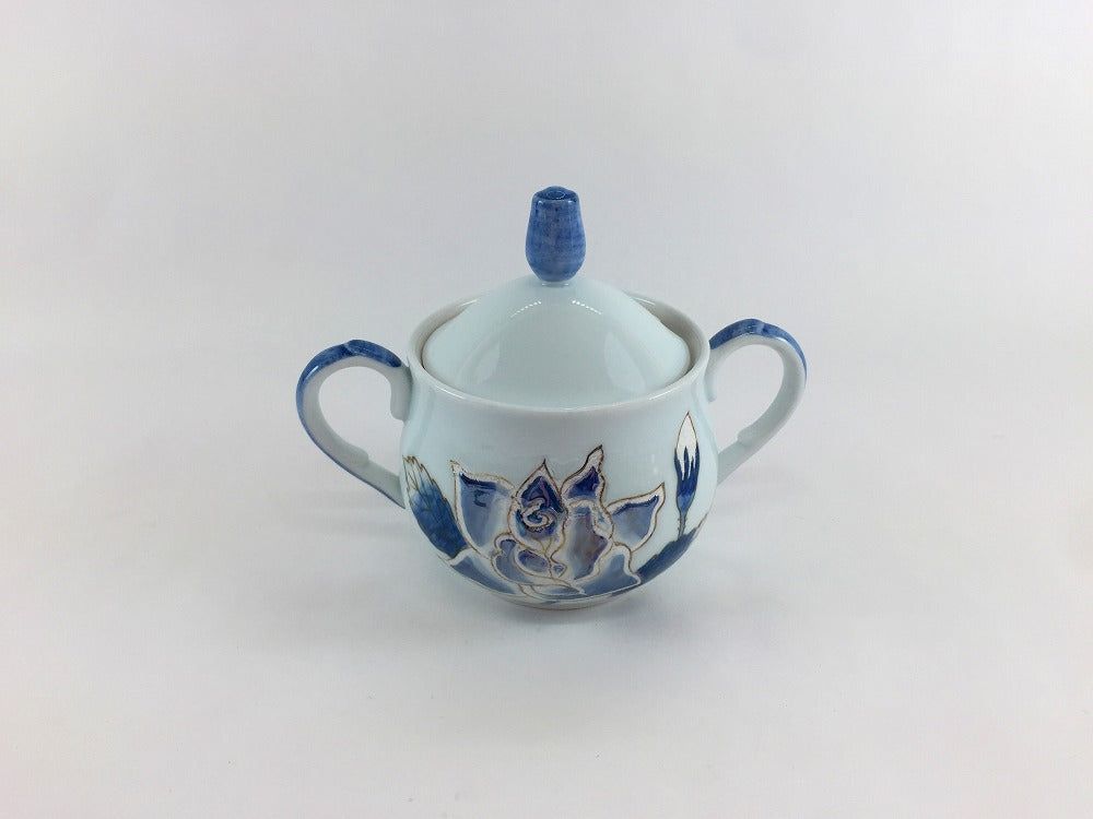 有田焼 田清窯 青ばらパール シュガーポット 【13cm 砂糖入れ 小物入れ 小鉢 ふたもの 蓋物 花柄】