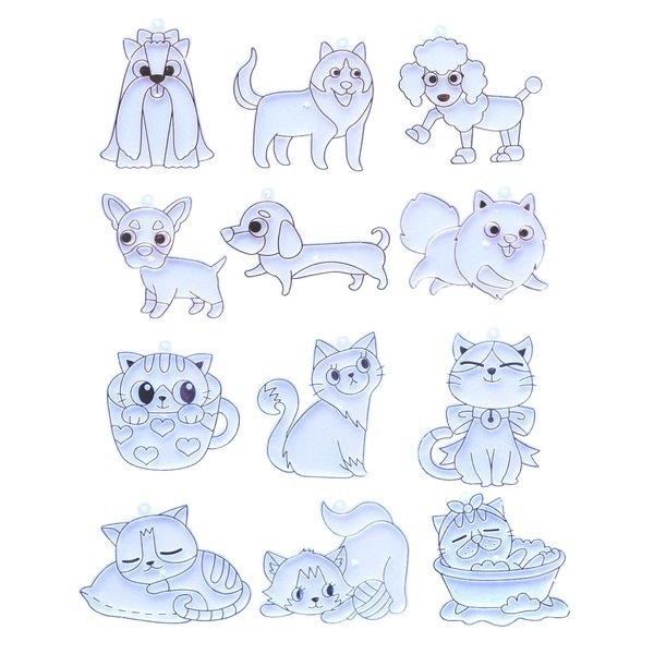グラスデコ 用 プレート 犬 猫 12個セット ガラス絵の具 ガラス絵具 小学生 低学年 子供会 かわいい