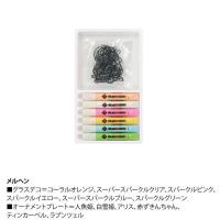 コーラルオレンジ、スパークルイエロー、スパークルピンク、スパークルグリーン、スーパースパークルブルー、スーパースパークルクリア