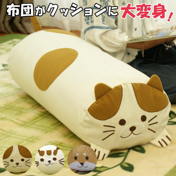 | 使っていない掛けふとん、通常は押入れの中に収納しておきますね。使わないふとんをインテリアで活用できたら・・・。 「ふとんdeクッション」は専用の収納袋に掛けふとんを入れてかわいい猫型、犬型クッションとして活用できます!そうすることにより押入れのスペースを他の収納に使うことの出来る便利グッズです。 | |