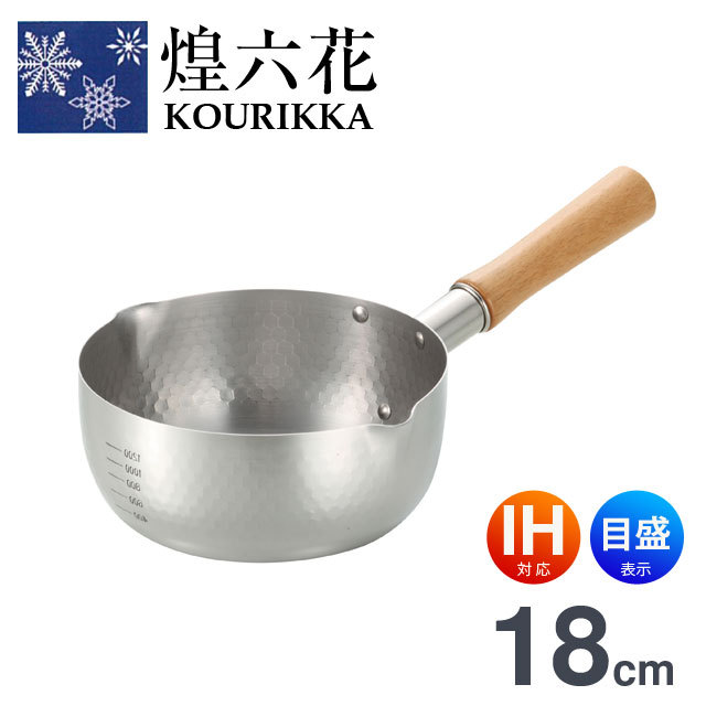 | 雪深い越後人が生み出した技で作り上げた雪平鍋 IH対応のステンレス製の雪平鍋。お手入れしやすく、長くきれいな状態で使えます。 ・天然木で安定感のあるハンドル持ち手。使い込むほどに手になじむハイグリップ感覚。 ・便利な目盛り付き(400・600・800・1000・1200ml) ・外観は日本らしく美しい鎚目仕上げ。 ・木柄カツラ部分も熱源に考慮し長く、木柄止めネジも長く2本止め。 |