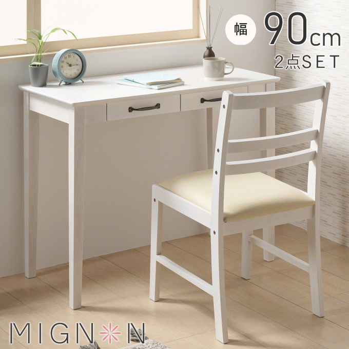 | デスクとチェアの2点セット。 カントリー&アンティーク調の可愛らしい雰囲気で一人暮らしの女性にも人気のミニヨンシリーズが新たに生まれ変わりました。 アンティーク調の家具のような質感のホワイトウォッシュカラーは温かみのある優しい仕上がりになっています。 1人暮らしや2人暮らしにぴったりなサイズです。 |