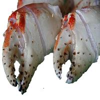 殻に切れ目入れてますので、解凍すると簡単に殻をはずせます。殻に汚れのない一級品。