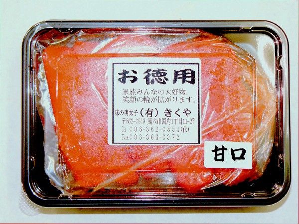 北海道産のたらこのみを原料に使用し、明太子をじっくり熟成させ、プチプチの粒子感でふっくらと仕上げました。お徳用は形は悪いですが、味は全く変わりません。