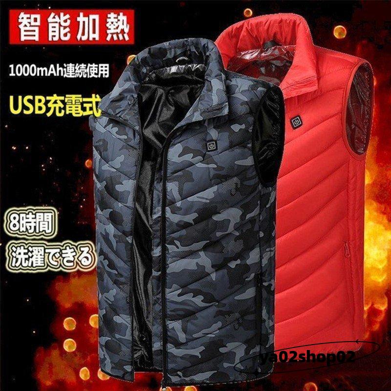 電熱ベスト ヒーター内蔵 秋冬用 薄くて軽い 防寒 チョッキ USB加熱 バッテリー給電 3段温度調整 2つヒーター スキー スケート 登山 釣り
