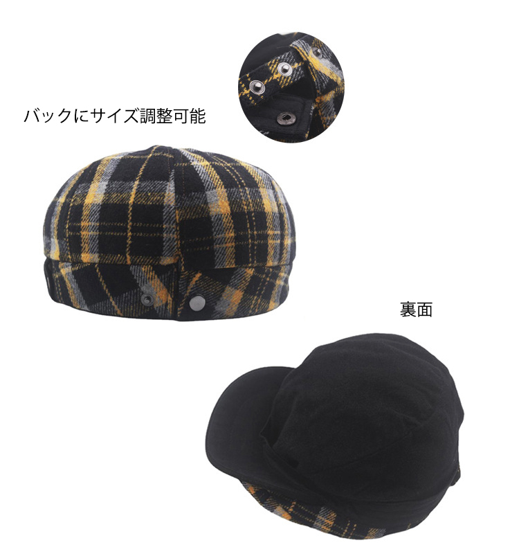 キャスケット レディース メンズ 帽子 チェック柄 ニュースボーイキャップ 小顔効果 深め 秋冬 防寒